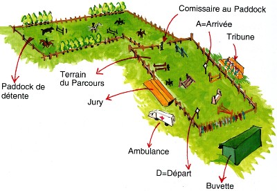 d'un terrain de dressage, d'un parcours de cross, d'un terrain de saut
