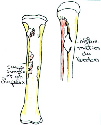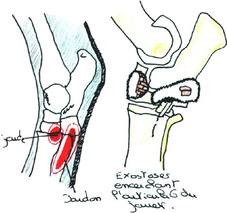 articulaires du jarret, en face interne, externe et postérieure. Ils sont tous le signe d'un travail intense auquel une telle articulation ne peut échapper.